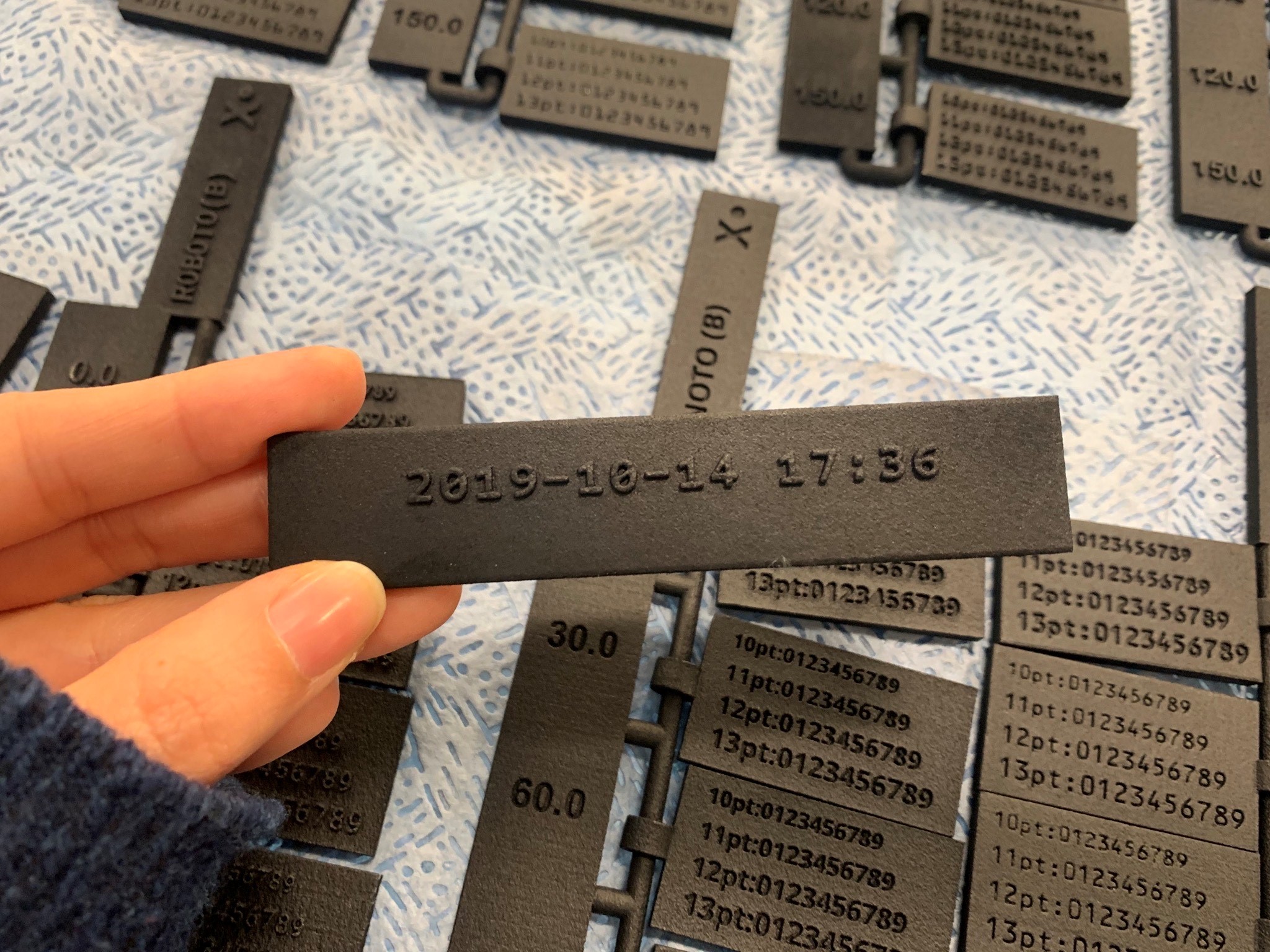 3D-printed part with an automatically generated timecode label using the cusotm font